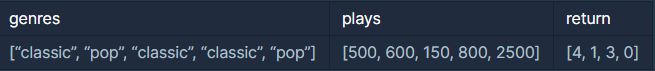 - plays[i]는 고유번호가 i인 노래가 재생된 횟수입니다.
